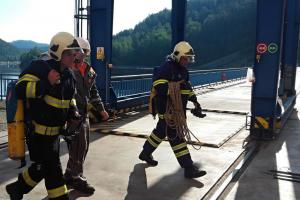 Hasiči nacvičovali záchranu dělníka v útrobách elektrárny Orlík