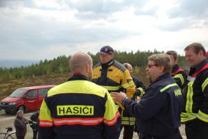Hasiči cvičili na dopadové ploše Jordán v CHKO Brdy
