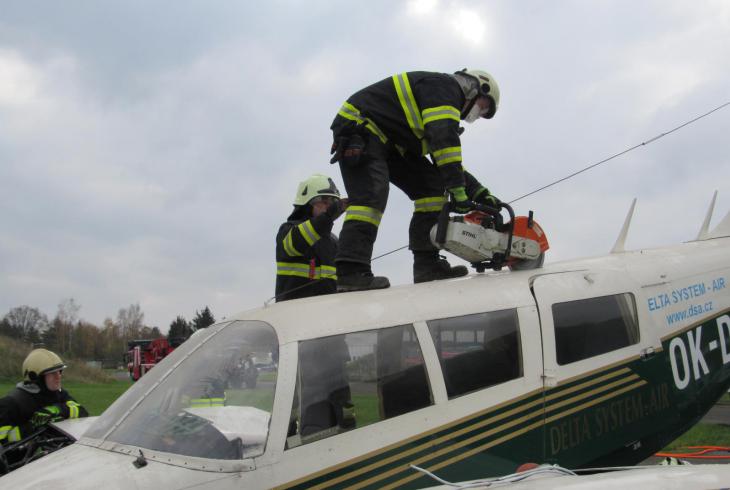 Jednotka musela na místě vyhodnotit například míru poškození páteře. Na základě toho zvolila záchranný postup. Hasiči nacvičovali vyproštění osob dveřmi letadla, ale došlo i na komplikovanější situace.