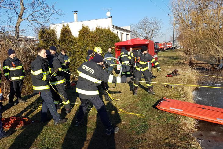 Základním předpokladem záchrany osoby je vlastní bezpečnost hasiče. Proto hasiči procvičovali pohyb po ledě a jištění za použití běžných prostředků, které mají k dispozici, jako jsou například lana či nastavovací žebříky. Díky těmto prostředkům se rozloží hmotnost a záchranáři se tak sami nepropadají.