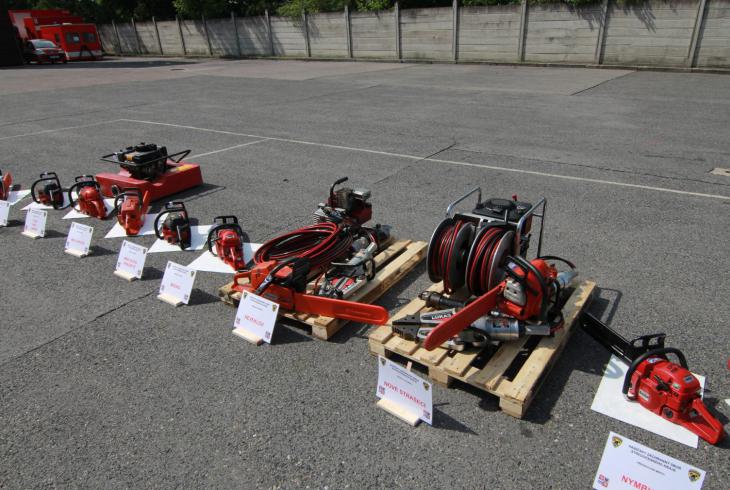Jednalo se o třináct hydraulických vyprošťovacích sad, čtyř plovoucích čerpadel, 35 kusů řetězových motorových pil a dvou ručních kotoučových rozbrušovacích.