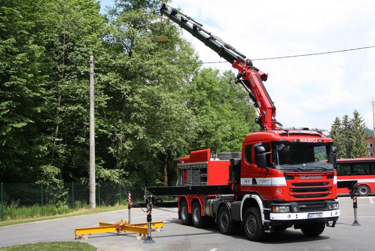 Po předání klíčů následovala ukázka vyprošťovacího automobilu při vytažení osobního vozidla jeřábovým ramenem a tažení nákladního vozidla navijákem.