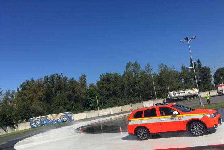 Výcvik se konal minulý týden v Centru bezpečné jízdy Ostrava (CBJ). Profesionální hasiči absolvovali jízdy jak na asfaltu (pohyblivé smykové desky, rizikové brzdění, aquavana), tak v terénu.
