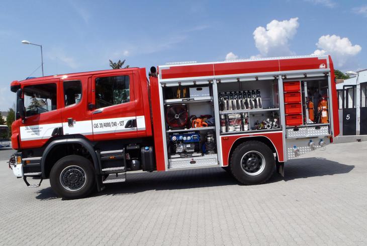 Nová CAS SCANIA, která byla pořízena v rámci projektu Fondu zábrany škod České kanceláře pojistitelů, je vybavena vznětovým motorem o objemu 12,7 litru s výkonem 353 kW. V kombinaci s plně automatickou sedmistupňovou převodovkou Allison dokáže automobil dosáhnout maximální rychlosti 110 km/h.