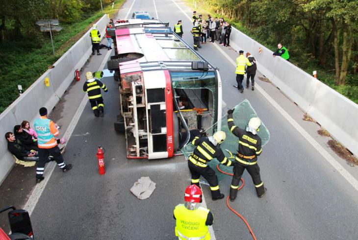 Hasicskelisty.cz: Na Slánsku havaroval autobus plný cestujících. Cvičně.