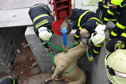 Neobvyklý teoretický a hlavně praktický výcvik pro příslušníky HZS MSK, který vedli členové veterinární záchranné služby Brno, Stejnou závěsnou síť používá pro velká zvířata i zmíněná brněnská záchranná služba, jediná tohoto typu v ČR a zřejmě i ve střední Evropě.