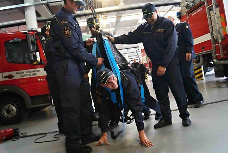Hasiči hned po tom, co síť dostali, přešli k praktickým záležitostem. Novinku okamžitě vyzkoušeli sami na sobě, kdy roli figuranta převzal přímo jeden z hasičů. Kvůli zásahům v obdobných případech se hasiči zúčastnili speciálního školení v Brně.