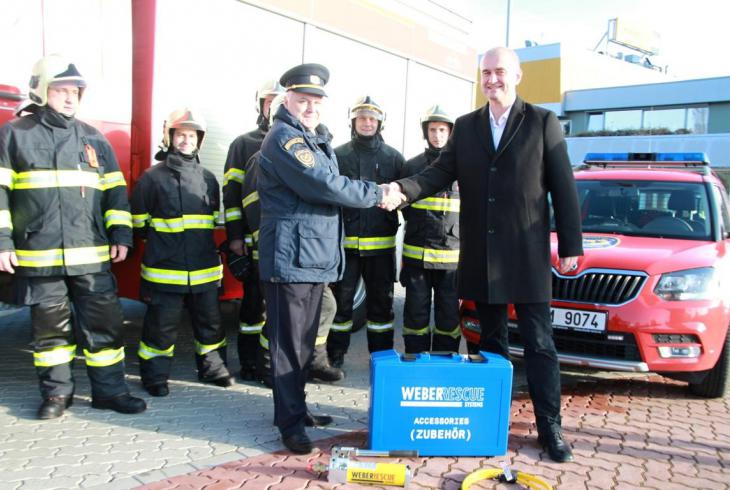 Celkem vzato, pro hasiče to svým způsobem neobvyklá událost přece jen byla. Z rukou finančního ředitele společnosti Jana Gru¨nwalda a vedoucího nákupu Ondřeje Kovalčíka totiž převzali zástupci sloužící směny B sadu na otevírání dveří od výrobce Weber Rescue.