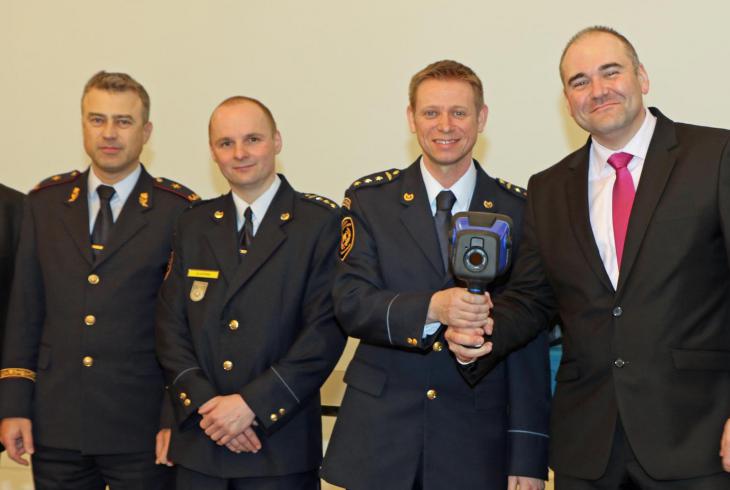 Dary převzal ředitel pražských hasičů brig. gen. Ing. Roman Hlinovský, spolu s velitelem holešovické stanice npor. Ing. Jiřím Rýparem a velitelem satalické stanice npor. Bc. Radkem Kužielem.