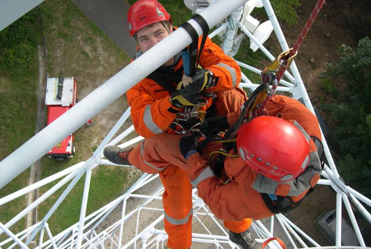 Po průzkumu a vyhodnocení situace provedli hasiči výstup na horní plošinu rozhledny, a to s využitím postupového jištění. Za pomoci speciálních prostředků pak cvičili bezpečné spouštění osoby z rozhledny. Tento výcvik zabral hasičům celé dopoledne.
